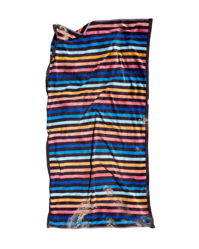 Extraite du contexte, chaque serviette donne à voir la trace en creux de son propriétaire et sa façon d’appréhender la plage.